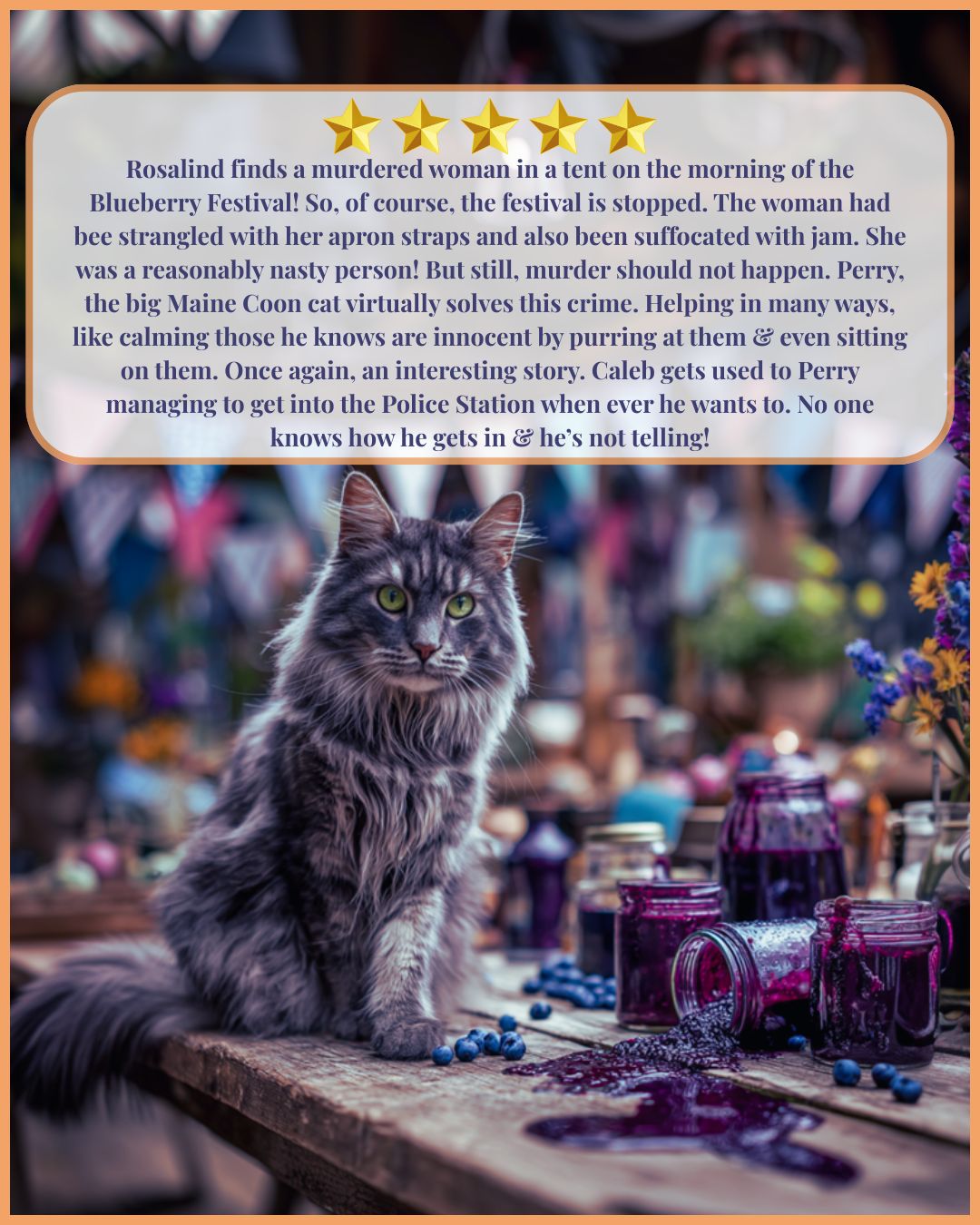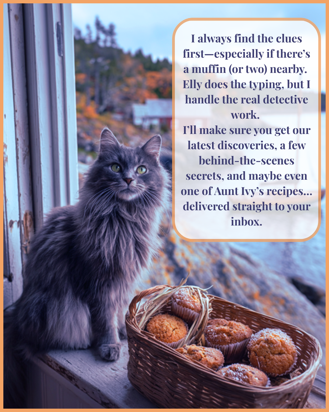 Her sleuthing sidekick? Perry, a clever Maine Coon cat with a nose for trouble and a talent for stealing scenes. In real life, Elly shares her writing chair with Leroy Selmon, her own Maine Coon, who inspires Perry’s sass and intuition.